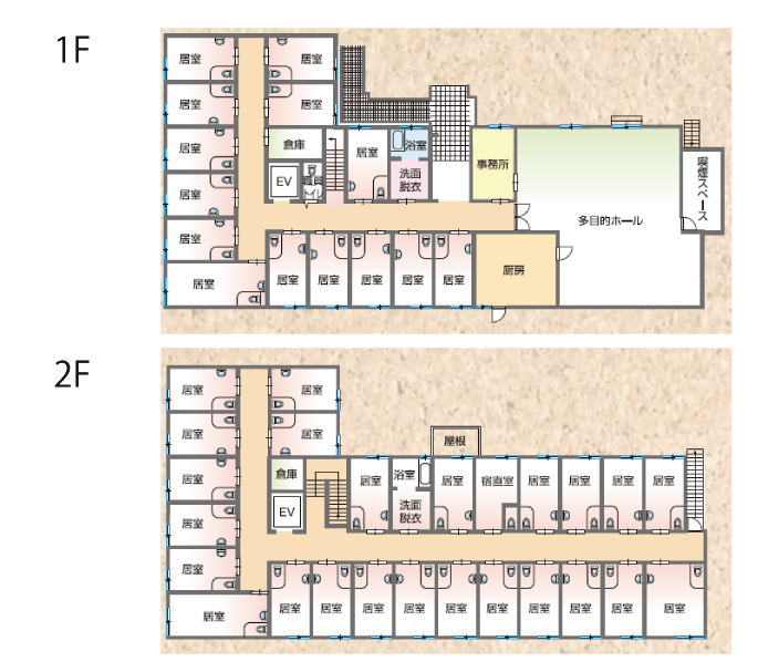| ・安 全 | スプリンクラー・自動火災報知器設置10キー自動ドア開閉システムや全室バリアフリー設計でセキュリティーも万全です。 |
